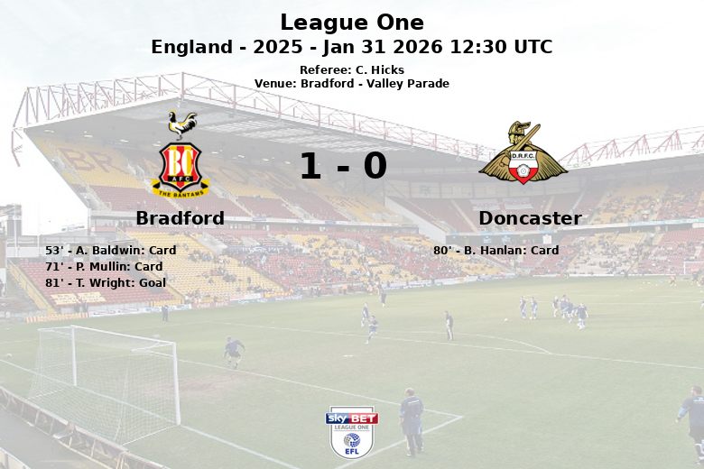Bradford, Inglaterra – Em um jogo muito disputado realizado no Valley Parade, o Bradford garantiu uma vitória apertada sobre o Doncaster. A partida, apitada por C. Hicks, foi caracterizada por sua intensidade e equilíbrio, refletidos na posse de bola quase igual (52% para o Bradford, 48% para o Doncaster).