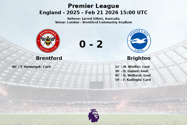 Londres – Em uma partida realizada no Brentford Community Stadium, o Brighton & Hove Albion saiu vitorioso contra o Brentford na 27ª rodada da Premier League. Apesar do Brentford ter desfrutado de uma posse de bola ligeiramente maior (52%), o Brighton demonstrou maior eficiência na frente do gol.