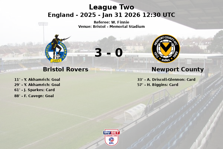 Bristol Rovers vs Newport County Jan 31 2026 12:30 UTC