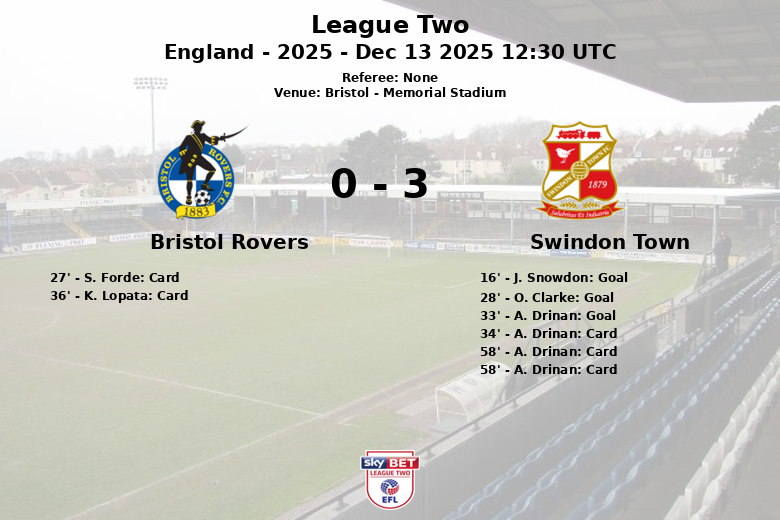 A partida, disputada em 13 de dezembro de 2025, viu o Swindon Town assumir a liderança rapidamente. J. Snowdon abriu o placar aos 16 minutos, seguido por O. Clarke aos 28 e A. Drinan aos 33, estabelecendo uma vantagem de 3-0 no primeiro tempo.