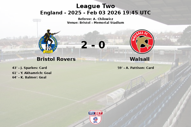 O Walsall tentou reagir, mas encontrou uma defesa sólida e, apesar de gerar mais chutes (14 contra 10 do Bristol Rovers), só conseguiu incomodar o goleiro adversário em três ocasiões. A. Pattison do Walsall recebeu um cartão amarelo aos 59 minutos. O Bristol Rovers demonstrou maior eficiência, convertendo 6 de seus 10 chutes em chutes a gol. A vitória permite ao Bristol Rovers consolidar sua posição na League Two.