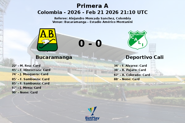 Bucaramanga, Colômbia – Uma partida carregada de tensão entre Bucaramanga e Deportivo Cali terminou em um empate sem gols no Estádio Américo Montanini. O jogo, correspondente à oitava rodada da Primera A, foi marcado pela intensidade e disciplina, refletida em um total de 12 cartões mostrados pelo árbitro Alejandro Moncada Sanchez.