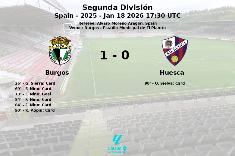 Burgos, Espanha – Em um jogo correspondente à 22ª rodada da Segunda Divisão, o Burgos C.F. alcançou uma vitória apertada contra o Huesca no Estádio Municipal de El Plantío. A partida, caracterizada por sua intensidade e numerosas faltas, culminou com um gol de Fernando Niño aos 73 minutos, após assistência de I. Morante, que acabou desequilibrando a balança a favor da equipe da casa.