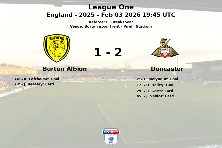 Burton Albion vs Doncaster Feb 03 2026 19:45 UTC