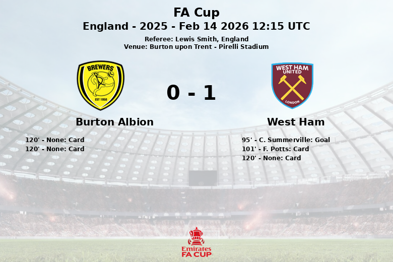 Burton upon Trent, Inglaterra – Em uma partida disputada no Pirelli Stadium em 14 de fevereiro de 2026, o West Ham conseguiu vencer o Burton Albion na FA Cup. A partida, arbitrada por Lewis Smith, foi caracterizada pela intensidade e lutas no meio-campo.