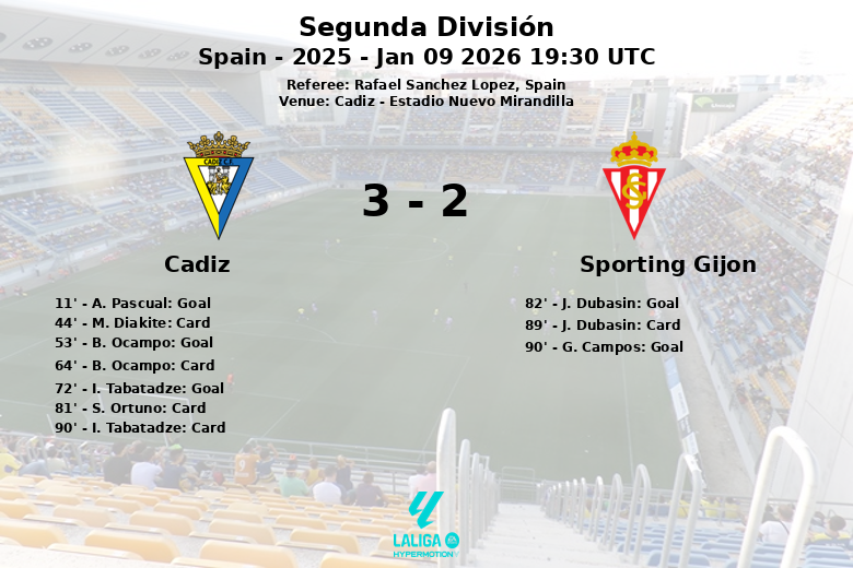 O Cádiz Club de Fútbol venceu o Sporting Gijón em um jogo emocionante disputado no Estádio Nuevo Mirandilla. A partida, correspondente à 21ª rodada da Segunda División, terminou com um placar de Cádiz 3, Sporting Gijón 2.