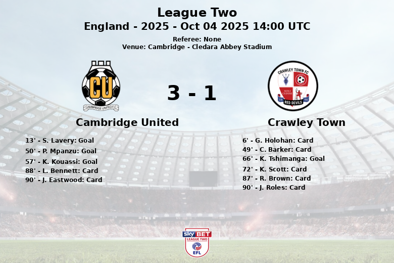 Cambridge United Supera Crawley Town em Jogo Cheio de Cartões