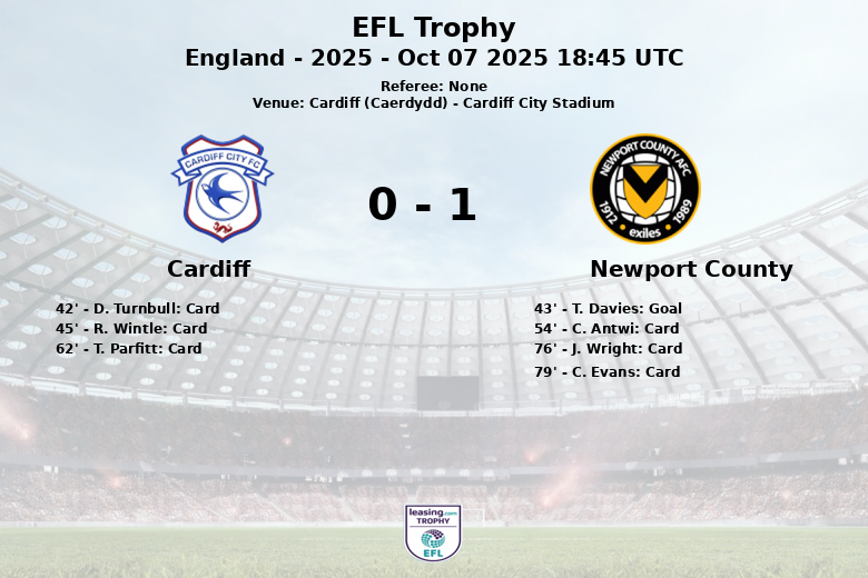 Em um jogo disputado em Cardiff, o Newport County garantiu uma vitória contra o time da casa, Cardiff, na rodada Southern – 2 do EFL Trophy. A partida, realizada em 7 de outubro de 2025, viu um desempenho eficaz do Newport County, apesar de ter menos posse de bola (36% em comparação com os 64% do Cardiff).