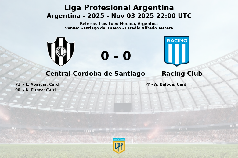 Central Córdoba de Santiago e Racing Club não conseguiram quebrar o empate em uma partida disputada no Estádio Alfredo Terrera. O jogo, correspondente à 14ª rodada da Liga Profesional Argentina, terminou com um placar de 0 a 0, refletindo a falta de eficácia de ambas as equipes diante do gol adversário.