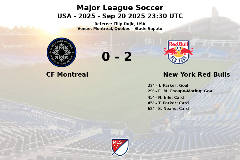O árbitro Filip Dujic (USA) apitou a partida no Stade Saputo, marcando um jogo onde a eficácia dos Red Bulls definiu o resultado final.