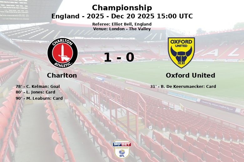 Charlton vs Oxford United Dec 20 2025 15:00 UTC