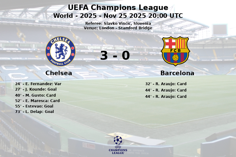 Londres – O Chelsea triunfou sobre o Barcelona em uma partida realizada em Stamford Bridge, como parte da fase de grupos da UEFA Champions League. O jogo, arbitrado por Slavko Vinčić, foi marcado por intensidade e decisões controversas.