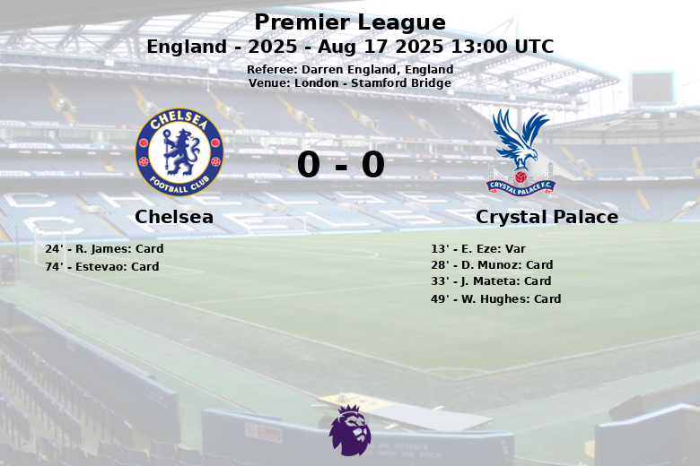 A partida foi carregada de intensidade, refletida nas numerosas faltas cometidas por ambas as equipes: 10 pelo Chelsea e 12 pelo Crystal Palace. O árbitro Darren England mostrou um total de 5 cartões amarelos, 2 para o Chelsea e 3 para o Crystal Palace. Um gol de E. Eze para o Crystal Palace foi anulado pelo VAR aos 13 minutos. Os escanteios também refletiram o domínio do Chelsea, que obteve 10 contra 2 do Crystal Palace. O resultado final não refletiu a clara superioridade estatística do Chelsea, que deverá melhorar sua eficácia em frente ao gol nas próximas partidas.