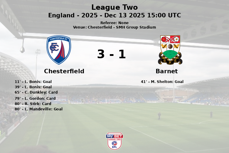 Chesterfield vs Barnet Dec 13 2025 15:00 UTC
