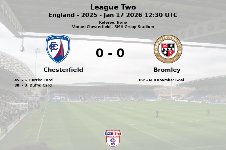 A partida foi intensa, com um total de 14 faltas cometidas pelo Chesterfield e 12 pelo Bromley. O árbitro mostrou dois cartões amarelos para jogadores do Chesterfield. Um momento chave da partida ocorreu aos 89 minutos, quando o Bromley perdeu um pênalti, frustrando suas esperanças de conquistar um ponto na partida. O atacante N. Kabamba desperdiçou a oportunidade da marca do pênalti. A partida fez parte da 27ª rodada da temporada 2025 da League Two.