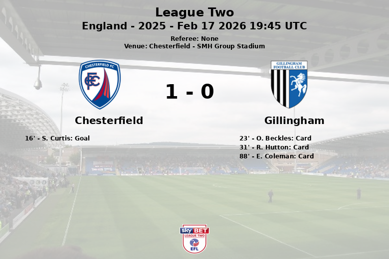 Chesterfield, Inglaterra – Em uma partida disputada no SMH Group Stadium, Chesterfield superou o Gillingham em um confronto da League Two, garantindo uma vitória. O único gol da partida saiu logo aos 16 minutos, cortesia de uma jogada bem executada finalizada por S. Curtis com assistência de S. Swinkels.