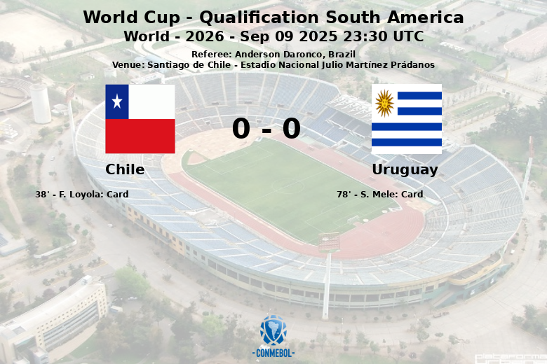 Santiago do Chile, 9 de setembro de 2025 – Em um jogo válido pelas Eliminatórias da Copa do Mundo de 2026, Chile e Uruguai empataram em 0 a 0 no Estádio Nacional Julio Martínez Prádanos. A partida, supervisionada pelo árbitro brasileiro Anderson Daronco, foi marcada por alta tensão e uma disputa acirrada no meio-campo.