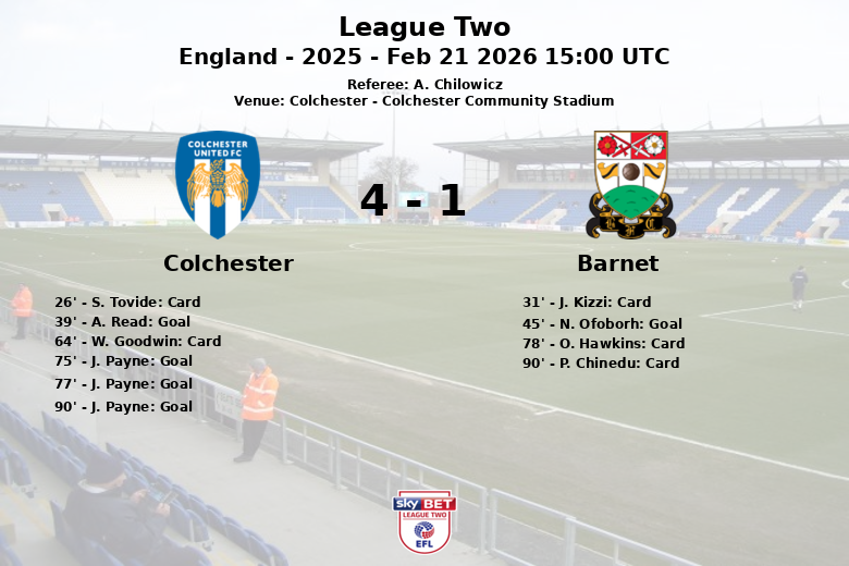 Colchester, Inglaterra – O Colchester United derrotou o Barnet em uma partida vibrante e disputada no Colchester Community Stadium. O jogo, correspondente à 34ª rodada da League Two, resultou em um placar final favorável ao time da casa, graças a um segundo tempo onde demonstraram grande eficácia.