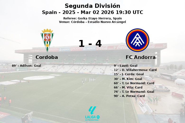 Cordoba vs FC Andorra Mar 02 2026 19:30 UTC