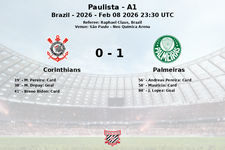 São Paulo, Brasil – Em uma partida tensa e emocionante disputada na Neo Química Arena, o Palmeiras garantiu uma vitória contra o Corinthians pelo placar de 1 a 1. Apesar de dominar a posse de bola com 57%, o Corinthians não conseguiu traduzir seu domínio em oportunidades claras de gol, registrando apenas 5 chutes, nenhum deles no alvo. A equipe da casa abriu o placar aos 38 minutos, graças a um gol de M. Depay, que aproveitou sua oportunidade após perder um pênalti. No entanto, o Palmeiras, com menos posse de bola (43%), permaneceu resiliente e empatou aos 84 minutos com um gol de J. Lopez. A partida foi marcada por vários cartões amarelos, dois para o Corinthians (M. Pereira e Breno Bidon) e dois para o Palmeiras (Andreas Pereira e Mauricio). O árbitro Raphael Claus apitou a partida. O jogo, válido pela sétima rodada da temporada regular do Paulista A1, deixou os torcedores apreensivos até o último minuto.