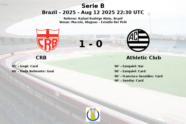 Maceió, Alagoas – O CRB venceu o Athletic Club em um jogo disputado no Estádio Rei Pelé, pela 21ª rodada da Série B brasileira. A partida, que teve a arbitragem de Rafael Rodrigo Klein, foi marcada pela intensidade e diversas interrupções.
