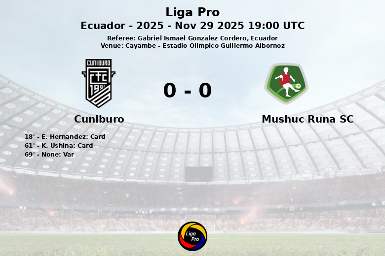 Cayambe, Equador – Em um encontro disputado no Estádio Olímpico Guillermo Albornoz, Cuniburo e Mushuc Runa SC não conseguiram balançar as redes, finalizando a partida com um placar de 0-0. O jogo, válido pela Liga Pro, Temporada 2025, Rodada Relegation Group – 6, foi marcado pela intensidade e pela luta no meio-campo, embora com escassas oportunidades claras de gol.