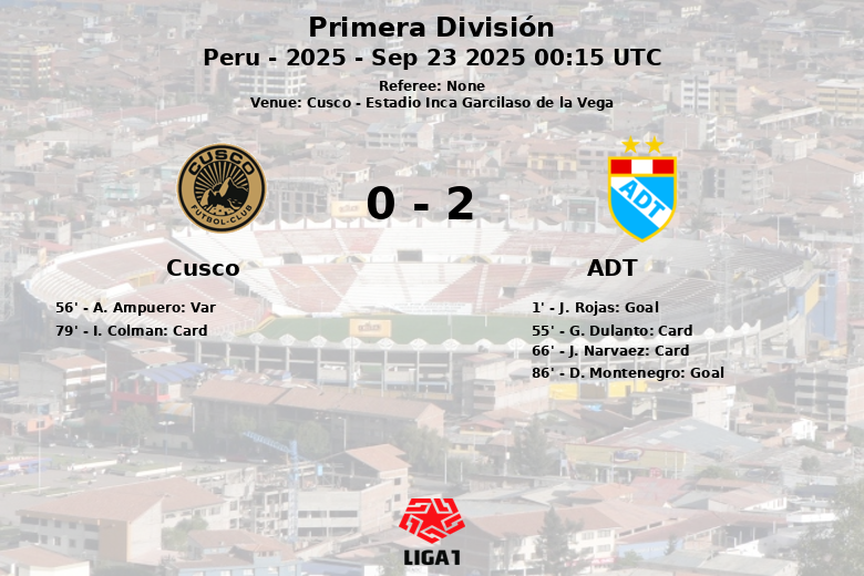 Na reta final da partida, D. Montenegro selou a vitória com um gol aos 86 minutos, com assistência de N. Bazan, consolidando a vitória do ADT. O Cusco, apesar de suas tentativas e superioridade na posse de bola, não conseguiu converter suas chances, terminando a partida com 11 chutes, dos quais apenas 2 foram no alvo. O ADT, com maior eficácia, conquistou a vitória com 10 chutes, 5 deles em direção ao gol rival.