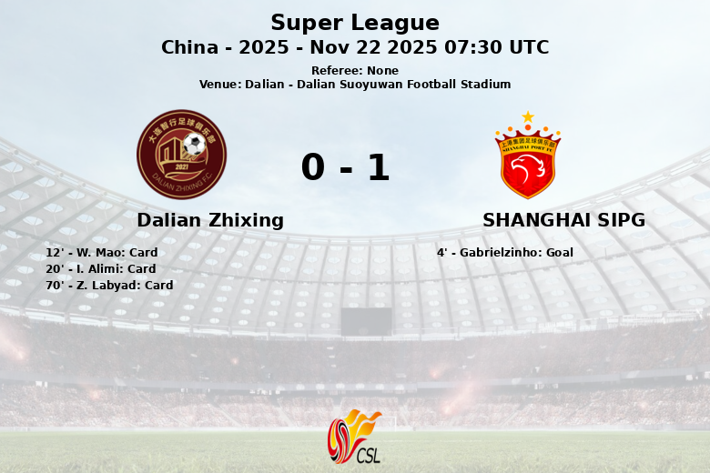 Dalian Zhixing vs SHANGHAI SIPG Nov 22 2025 07:30 UTC