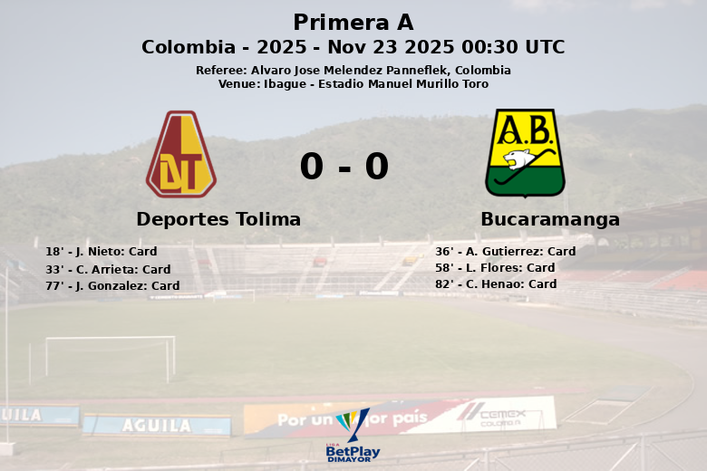 O Bucaramanga, com 34% de posse, apostou em uma estratégia mais defensiva, buscando oportunidades em contra-ataque. Conseguiram realizar 8 disparos, mas apenas um exigiu a intervenção do goleiro do Tolima. O encontro foi marcado pela intensidade no meio-campo, refletida no número de faltas cometidas por ambas as equipes (10 por lado) e os seis cartões amarelos mostrados pelo árbitro (três para cada equipe). O Deportes Tolima gerou 7 escanteios, mas não conseguiu capitalizá-los. A partida terminou sem gols, refletindo a solidez defensiva de ambas as equipes e a falta de contundência na finalização.