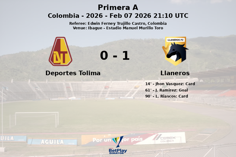 Ibague, Colômbia – Em uma partida realizada no Estádio Manuel Murillo Toro, Llaneros garantiu uma vitória por 1 a 0 contra o Deportes Tolima. Apesar do domínio do Tolima na posse de bola (65% contra 35%), foi o Llaneros quem conseguiu capitalizar em sua oportunidade mais clara.