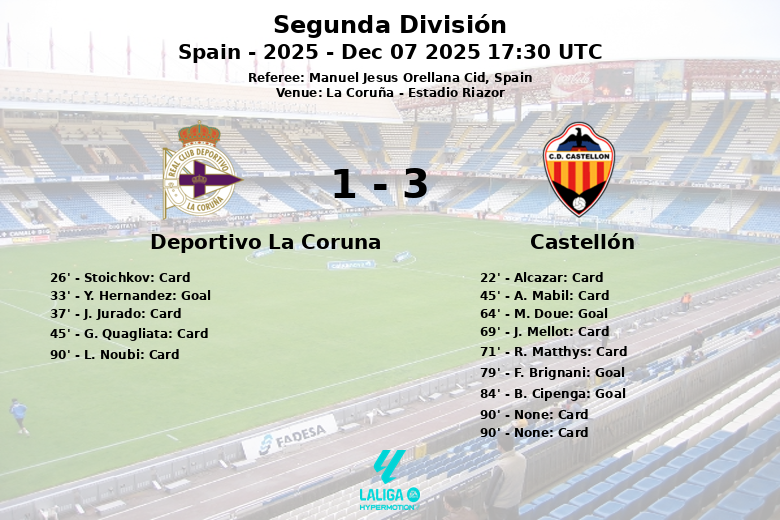 Em um jogo disputado no Estádio Riazor, em La Coruña, o Castellón alcançou uma impressionante vitória por 3-1 sobre o Deportivo La Coruña. A partida, correspondente à 17ª rodada da Segunda Divisão, foi repleta de emoções e reviravoltas.