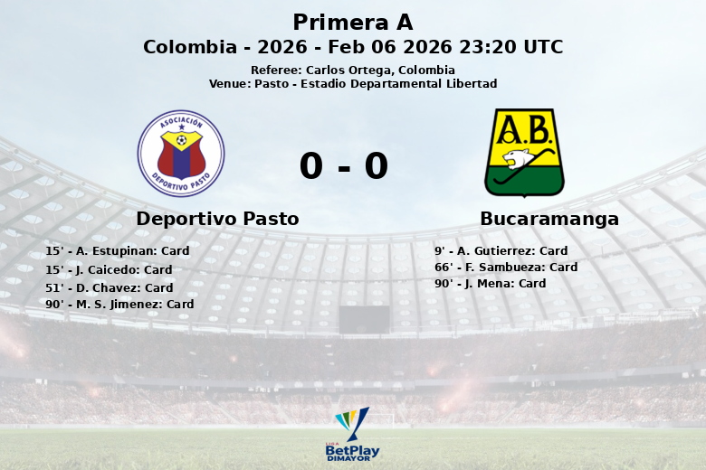 Pasto, Colômbia – Uma partida disputada no Estádio Departamental Libertad terminou em um empate sem gols entre Deportivo Pasto e Atlético Bucaramanga. Apesar do esforço e da intensidade em campo, nenhuma das equipes conseguiu romper o placar. O árbitro, Carlos Ortega, foi forçado a mostrar vários cartões amarelos ao longo da partida.