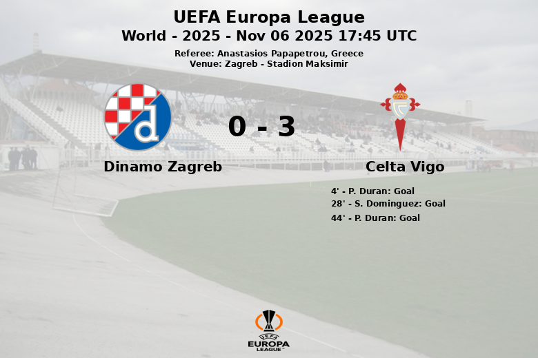Num emocionante encontro disputado no Stadion Maksimir em Zagreb, o Celta Vigo conquistou uma valiosa vitória contra o Dinamo Zagreb na quarta jornada da UEFA Europa League. Apesar do Dinamo Zagreb ter dominado a posse de bola com 61%, o Celta Vigo mostrou-se mais eficaz em frente à baliza.