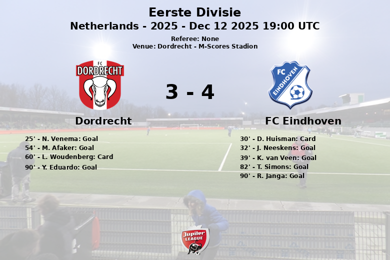 Dordrecht, Países Baixos – Uma partida eletrizante no M-Scores Stadion deixou os torcedores à beira de seus assentos, com Dordrecht e FC Eindhoven dividindo os pontos em um confronto cheio de ação e gols.
