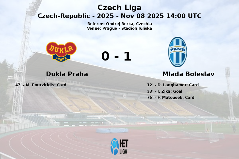 Apesar de sete escanteios a favor do Dukla Praha, a defesa do Mlada Boleslav permaneceu sólida e conseguiu garantir a vitória. Com este resultado, o Mlada Boleslav soma três valiosos pontos em sua luta para subir posições na tabela da Liga Tcheca.