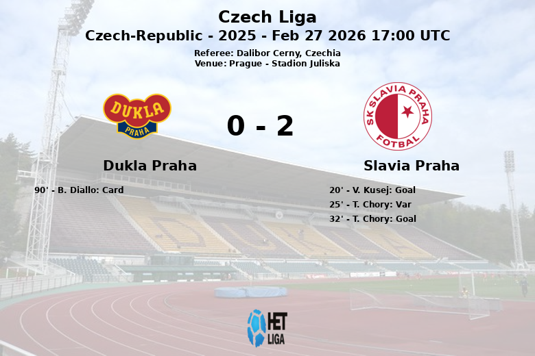 Praga, República Checa – O Slavia Praha venceu o Dukla Praha em um jogo disputado no Stadion Juliska, correspondente à 24ª rodada da Liga Tcheca. O encontro, arbitrado por Dalibor Cerny, foi caracterizado por um domínio do Slavia na posse de bola (60%), embora o Dukla não se intimidou e buscou suas oportunidades.