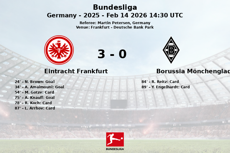 Frankfurt, Alemanha – Em uma partida disputada no Deutsche Bank Park, o Eintracht Frankfurt venceu de forma convincente o Borussia Mönchengladbach. Apesar de ter menos posse de bola (44% contra 56% do Gladbach), o Frankfurt demonstrou uma eficácia letal em frente ao gol.