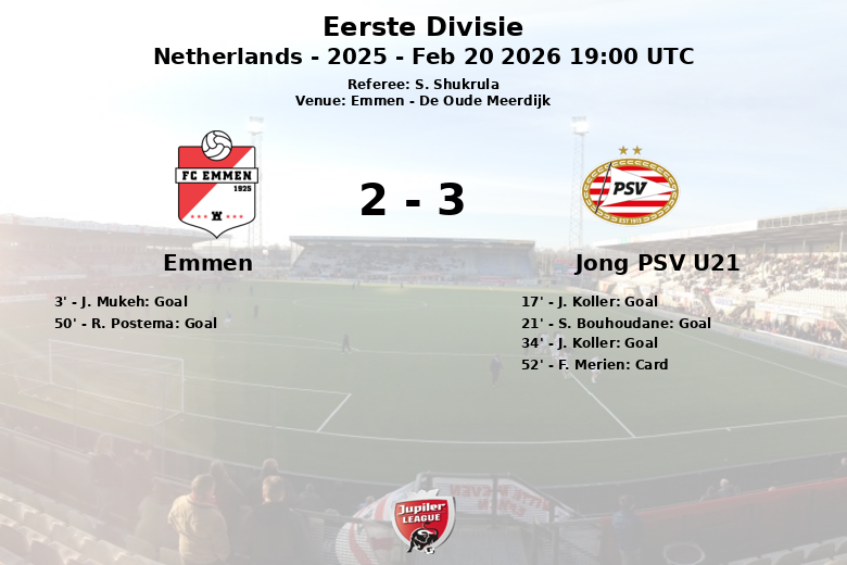 Jogo Emocionante em Emmen: Jong PSV U21 Supera Emmen em Partida Cheia de Gols