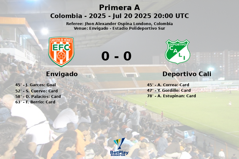 O jogo foi caracterizado por um jogo físico e numerosas interrupções, refletido nos seis cartões amarelos mostrados pelo árbitro Jhon Alexander Ospina Londono, três para cada equipe. O Deportivo Cali dominou em escanteios (8 contra 2), mas não conseguiu traduzir sua superioridade no jogo ofensivo em oportunidades claras de gol, não registrando chutes a gol. O Envigado, com menos posse de bola (46%), gerou mais perigo, com dois chutes a gol. A partida terminou com uma divisão de pontos que não deixou totalmente satisfeita nenhuma das duas equipes.