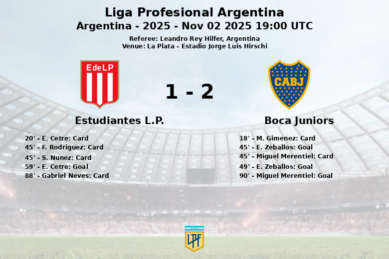 Estudiantes L.P. vs Boca Juniors Nov 02 2025 19:00 UTC