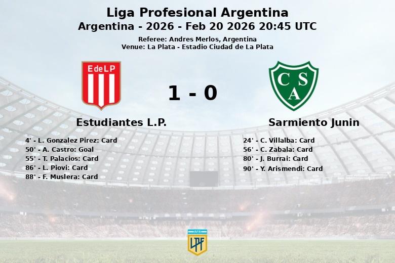 La Plata foi palco de um jogo truncado e com muitas advertências, onde o Estudiantes de La Plata conseguiu vencer o Sarmiento de Junín. A partida, válida pela 6ª rodada da Liga Profesional Argentina 2026, foi disputada no Estádio Ciudad de La Plata, sob a arbitragem de Andrés Merlos.