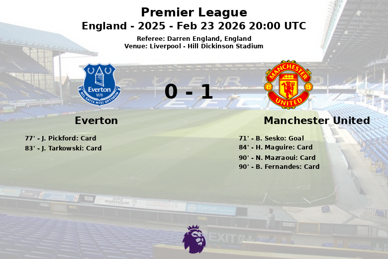 O momento chave da partida ocorreu aos 71 minutos, quando B. Sesko marcou para o Manchester United, após assistência de B. Mbeumo. O confronto foi marcado por advertências, com cartões amarelos para J. Pickford e J. Tarkowski do Everton, e para H. Maguire, N. Mazraoui e B. Fernandes do Manchester United. A intensidade do jogo se refletiu no número de faltas cometidas, com 12 pelo Everton e 7 pelo Manchester United. O árbitro Darren England teve trabalho para manter o controle da partida.