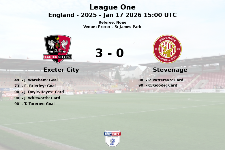 Exeter City vs Stevenage Jan 17 2026 15:00 UTC