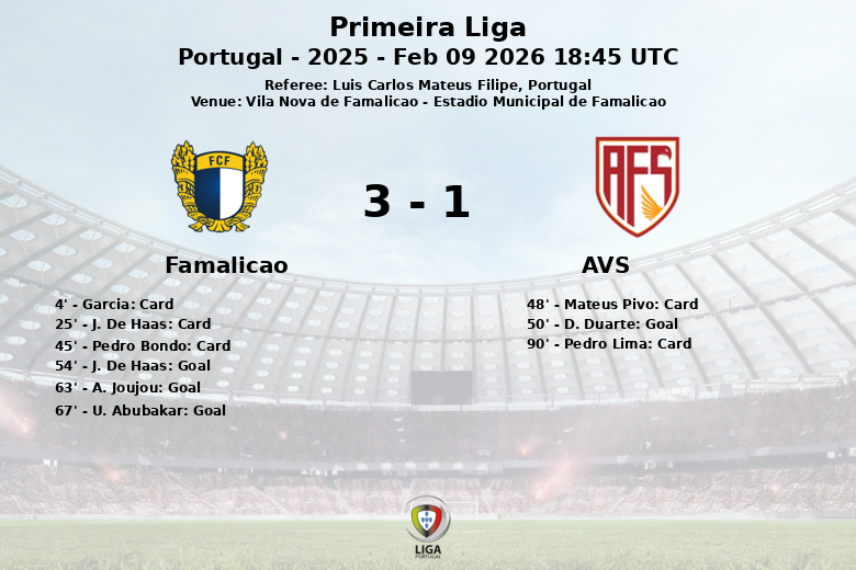 O AVS recebeu um cartão amarelo para Mateus Pivo aos 48 minutos e outro no final para Pedro Lima aos 90 minutos, refletindo a frustração da equipe visitante perante o domínio local. Apesar dos esforços do AVS, o Famalicão manteve sua vantagem até o final, garantindo os três pontos em casa. O encontro terminou com um total de três cartões amarelos para o Famalicão e dois para o AVS. O Famalicão executou 7 cantos contra os 2 do AVS.