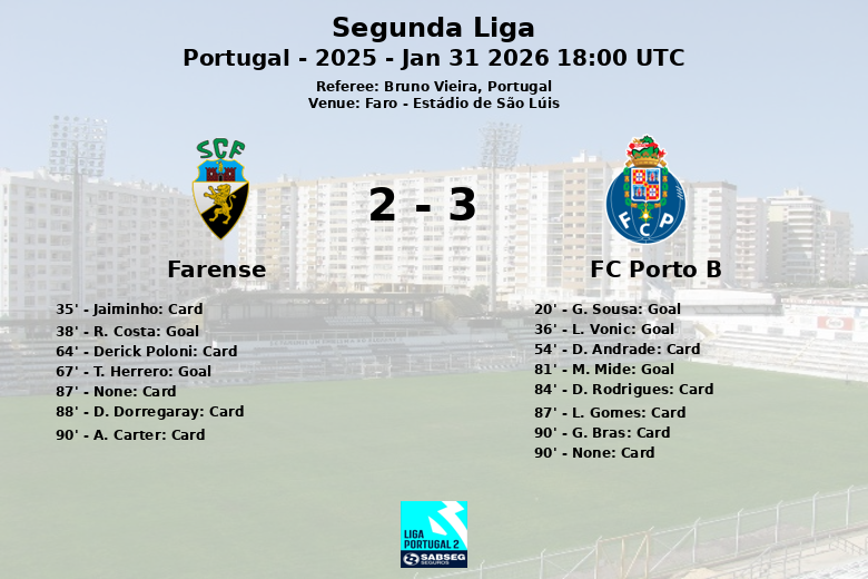 Em um emocionante jogo disputado no Estádio de São Lúis, em Faro, o FC Porto B venceu o Farense em uma partida cheia de gols e cartões. O jogo, correspondente à 20ª rodada da Segunda Liga portuguesa, não decepcionou os torcedores.