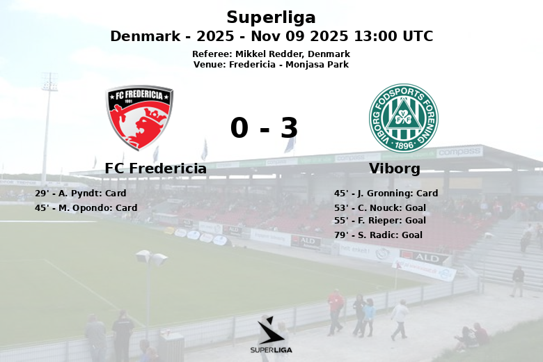 Em uma partida animada realizada no Monjasa Park em Fredericia, o Viborg garantiu uma importante vitória sobre o FC Fredericia. Apesar do FC Fredericia manter uma ligeira vantagem na posse de bola, com 53% contra 47% do Viborg, este último mostrou-se mais eficaz em frente ao gol.