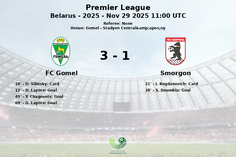 Gomel, Bielorrússia – Em uma partida realizada no Stadyen Central’ny, o FC Gomel superou o Smorgon na Premier League bielorrussa. O jogo, correspondente à 30ª rodada da temporada regular, foi marcado pela eficiência ofensiva da equipe da casa.