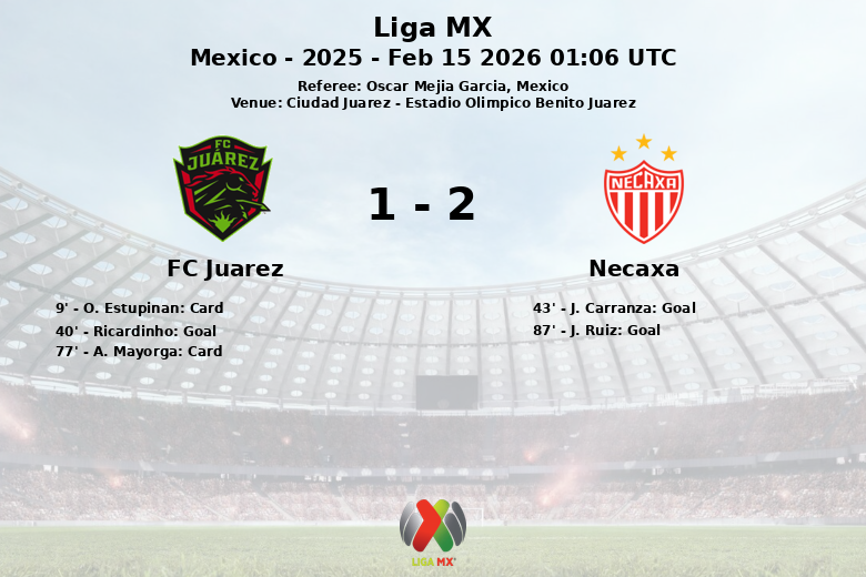 O FC Juárez começou a partida com ímpeto, embora o primeiro aviso não demoraria a se refletir com um cartão amarelo para O. Estupiñán aos 9 minutos. A recompensa para os “Bravos” veio aos 40 minutos, quando Ricardinho, assistido por D. García, abriu o placar com um gol que levantou a torcida. No entanto, a alegria duraria pouco, já que o Necaxa respondeu rapidamente aos 43 minutos com um gol de J. Carranza, após uma assistência de I. Tello, empatando o placar antes do intervalo.
