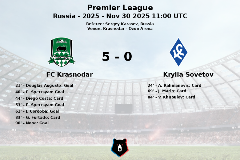 O Krasnodar demonstrou clara superioridade tática e técnica, consolidando sua posição na Premier League.