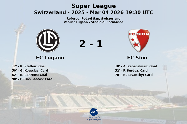 FC Lugano vs FC Sion Mar 04 2026 19:30 UTC